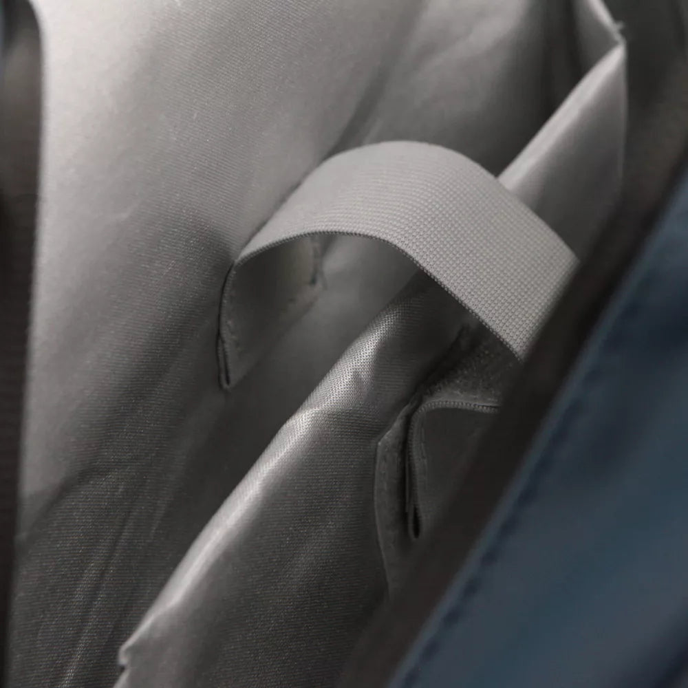 Sekken har bærehank og polstrede, justerbare skulderremmer. Innvendig har den en polstret laptop-lomme, og en liten glidelåslomme til verdisakene dine. Ytterlomme foran og bak samt to åpne sidelommer.